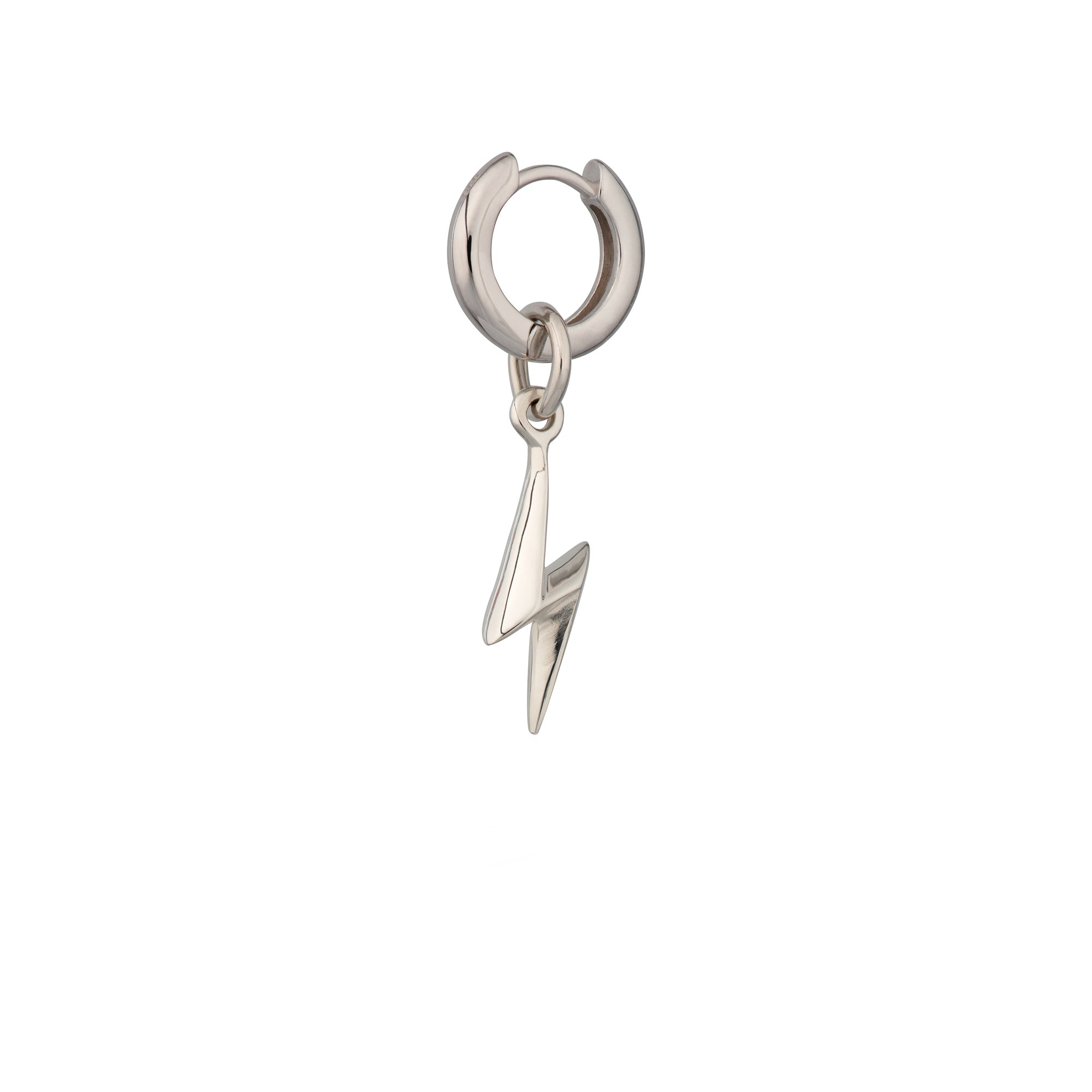 Catching the light on its high-shone faceted edges, the lightning bolt charm hangs from our classic Huggie Hoop.