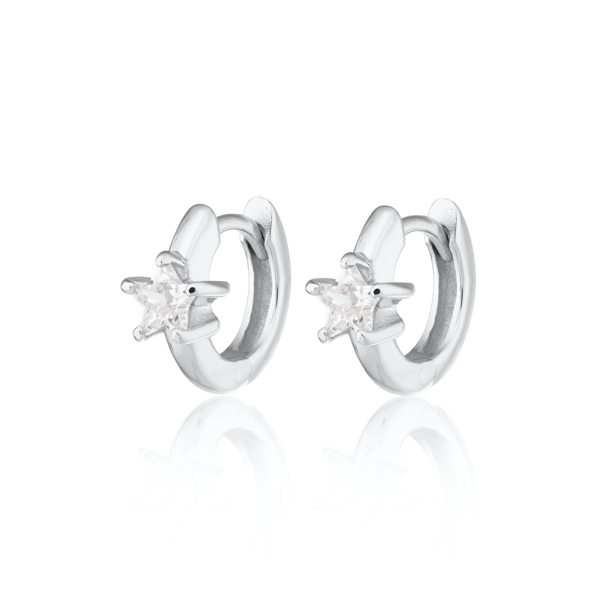 Simple and chic these sparkling star huggie earrings have been studded with a star shaped cubic zirconia stone that sits at the front of our classic huggie hoop earring. Offering sophisticated sparkle the star-shaped stone has been faceted to catch the light for a dazzling north star shine.