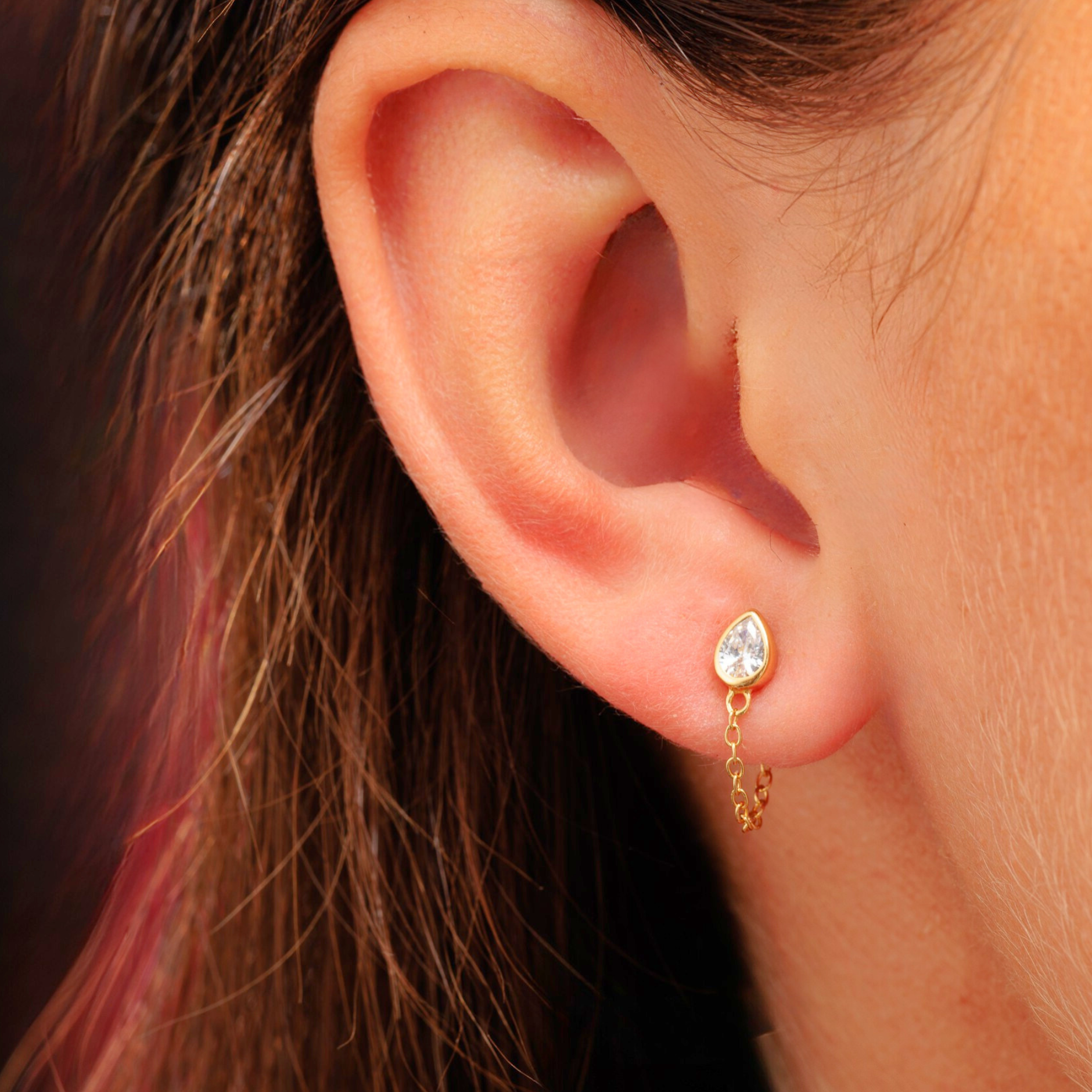 Add these teardrop stud earrings with a sleek chain wrap to your ear stack for added sparkle and movement