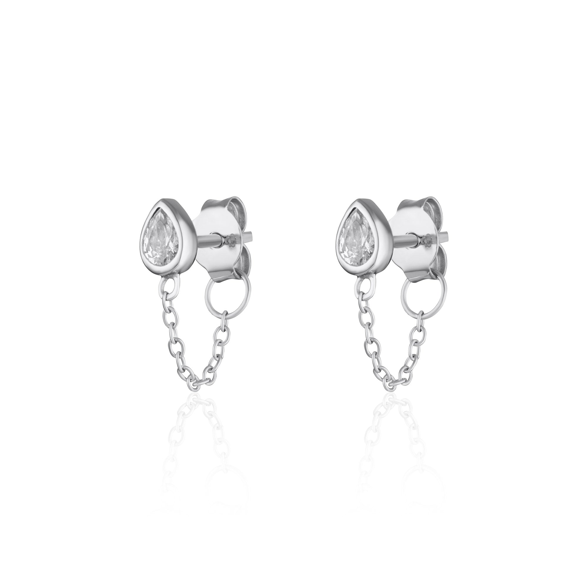 Chained Teardrop Stud Earrings with Clear Stone