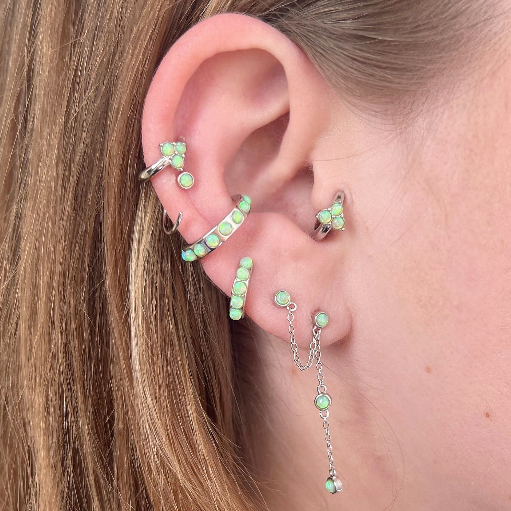 Shimmering with lime green opals, this cuff brings fire to any ear stack.