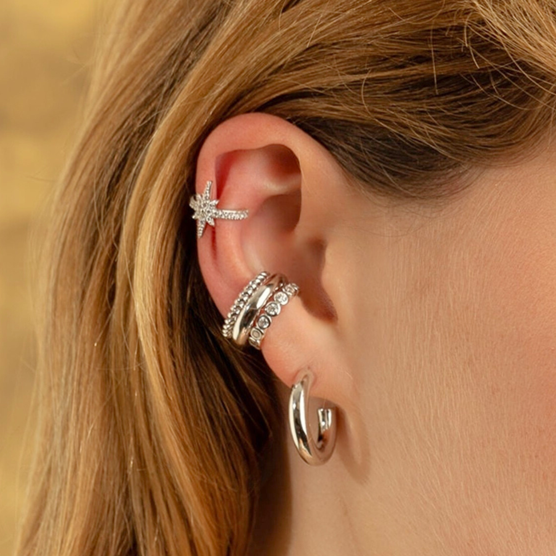 Sitting on the upper ear our small Starburst Ear cuff is a statement piece that ensure maximum sparkles.
