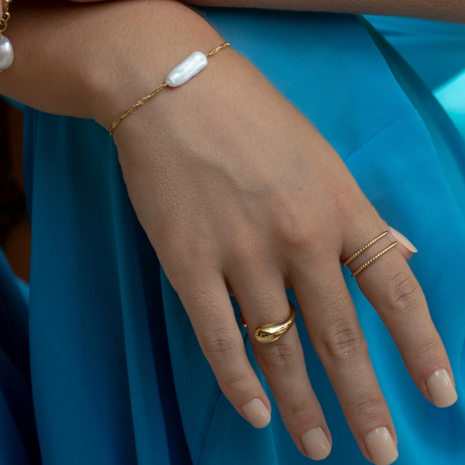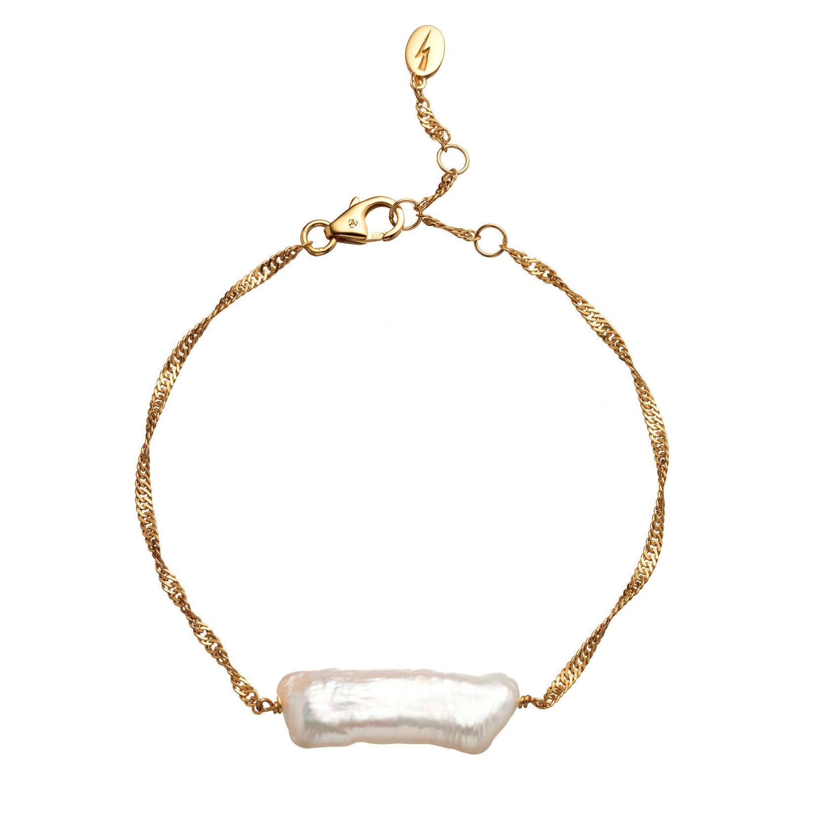 Bouncing off iridescent white hues this pearl twist chain bracelet is the ideal accessory for styling this summer.