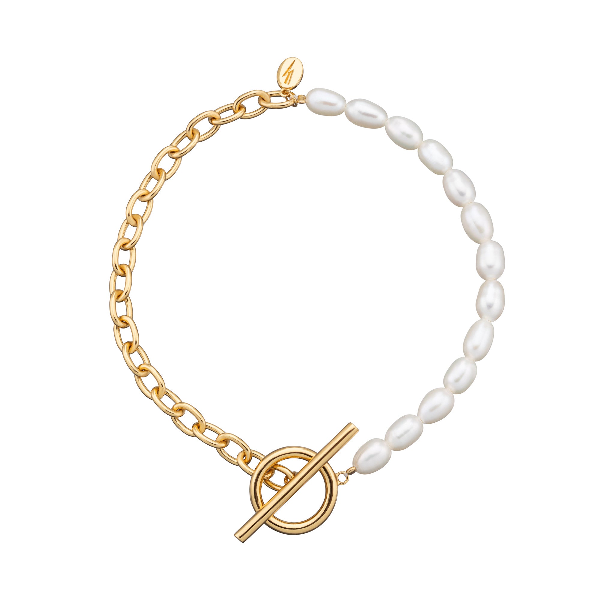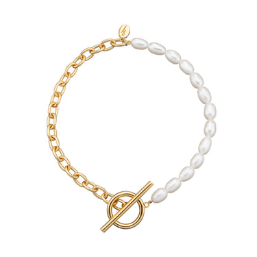 Hannah Martin Gold Pearl and Chain T Bar Bracelet