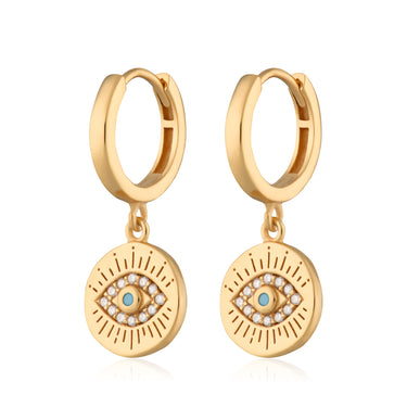 These evil eye charm hoop earrings stunningly blends style with symbols of good luck.