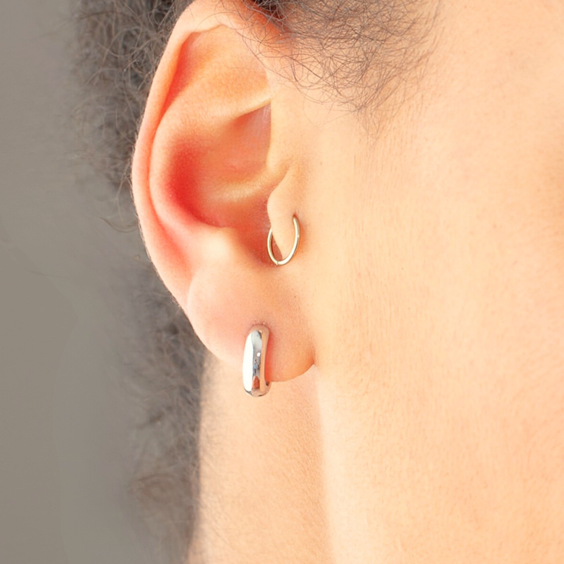 Not sure where to wear your huggie earrings? See our ear piercing guide below to show you what piercing this earring is suitable for and help you curate your next ear stack:
