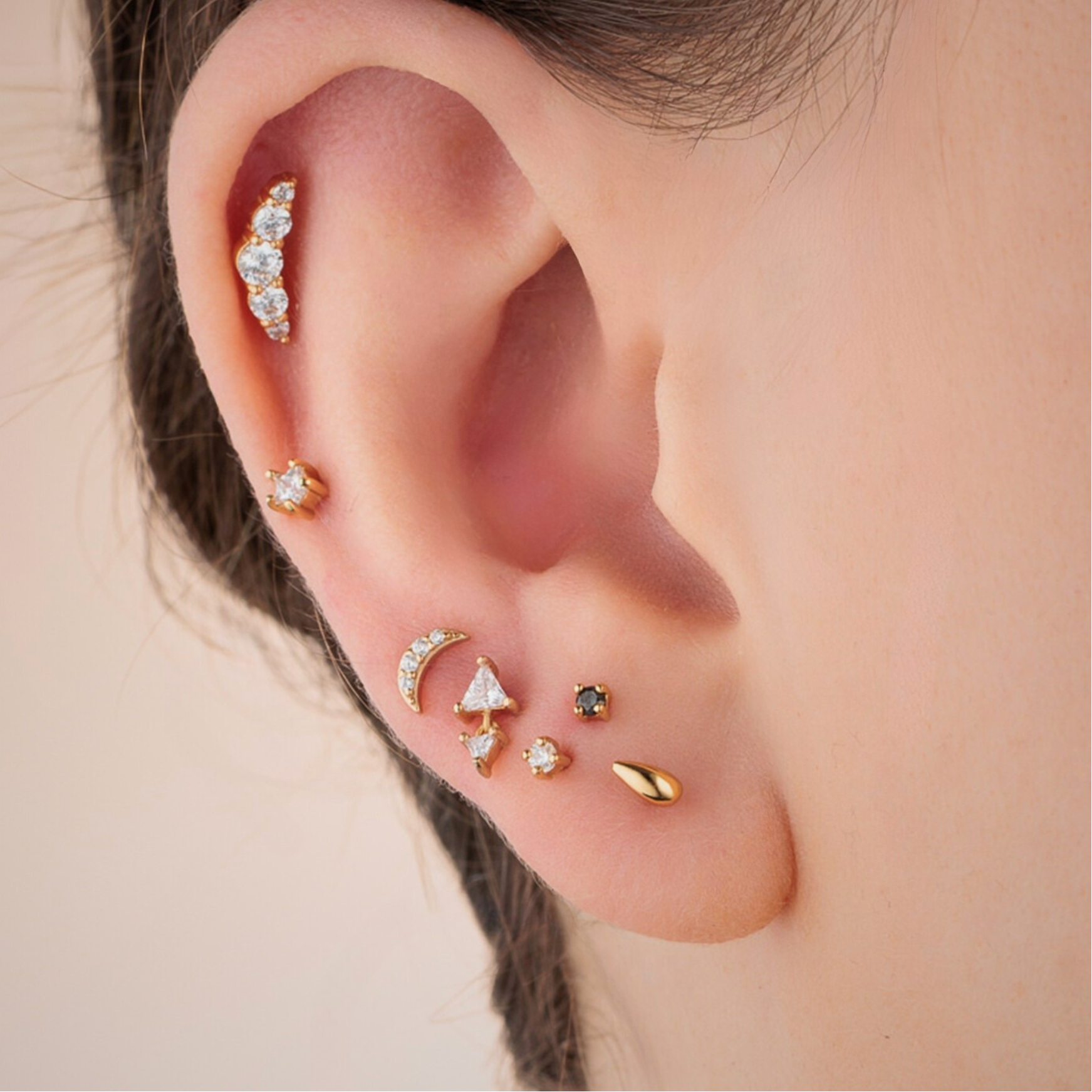 Flat back earrings or labret earrings can be worn almost anywhere on the ear. The most worn place for flat back earrings is the tragus piercing however we find these earrings to be great for lobe piercings, helix piercings, conch piercings and daith piercings. Their flat back design allows you to have both comfort and style in a sleek earring design make them a must have for your curated ear.