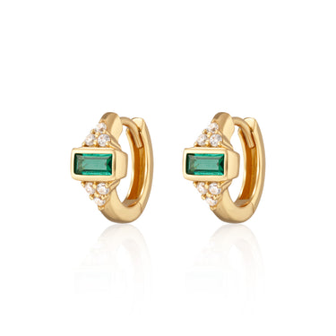 Audrey Huggie Earrings with Green Stones