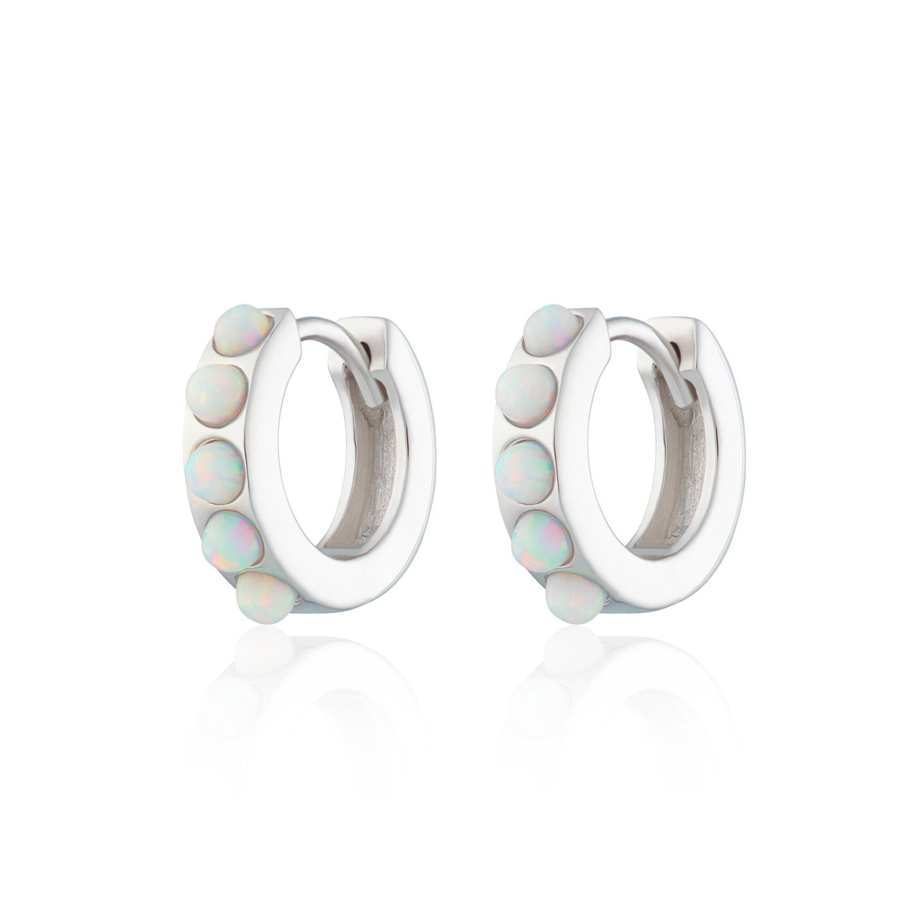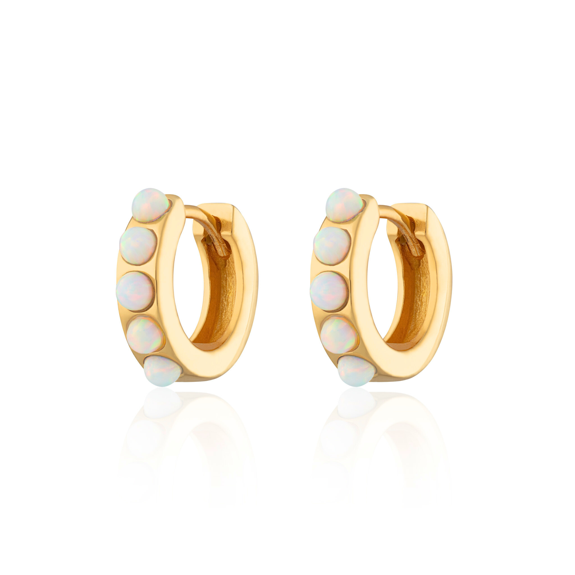 Our bestselling iridescent Opal huggie earrings are a modern classic that shimmer & shine as you move.