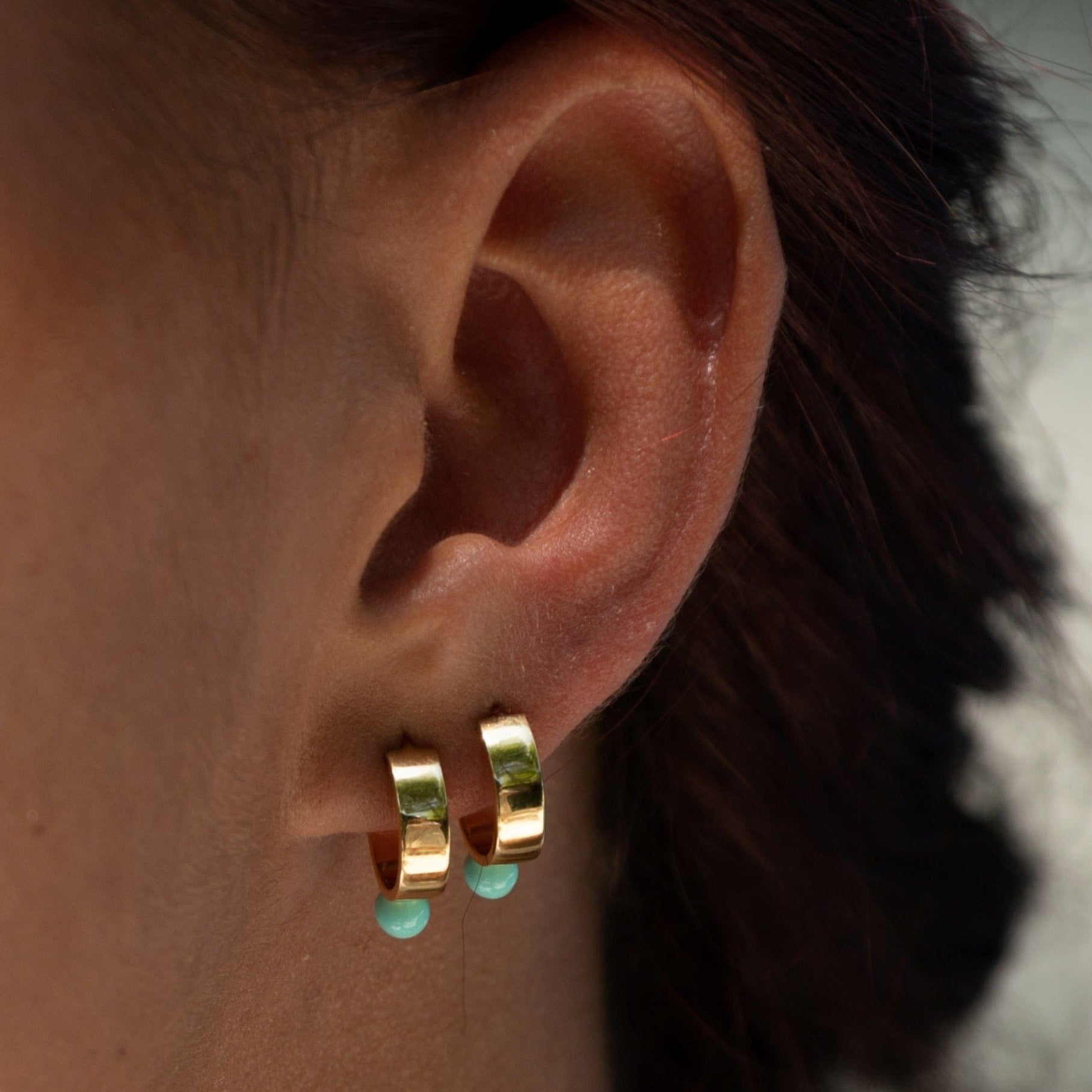 Add a delicate pop of colour to your summer style with these Limited Edition Turquoise Dot Huggie Earrings