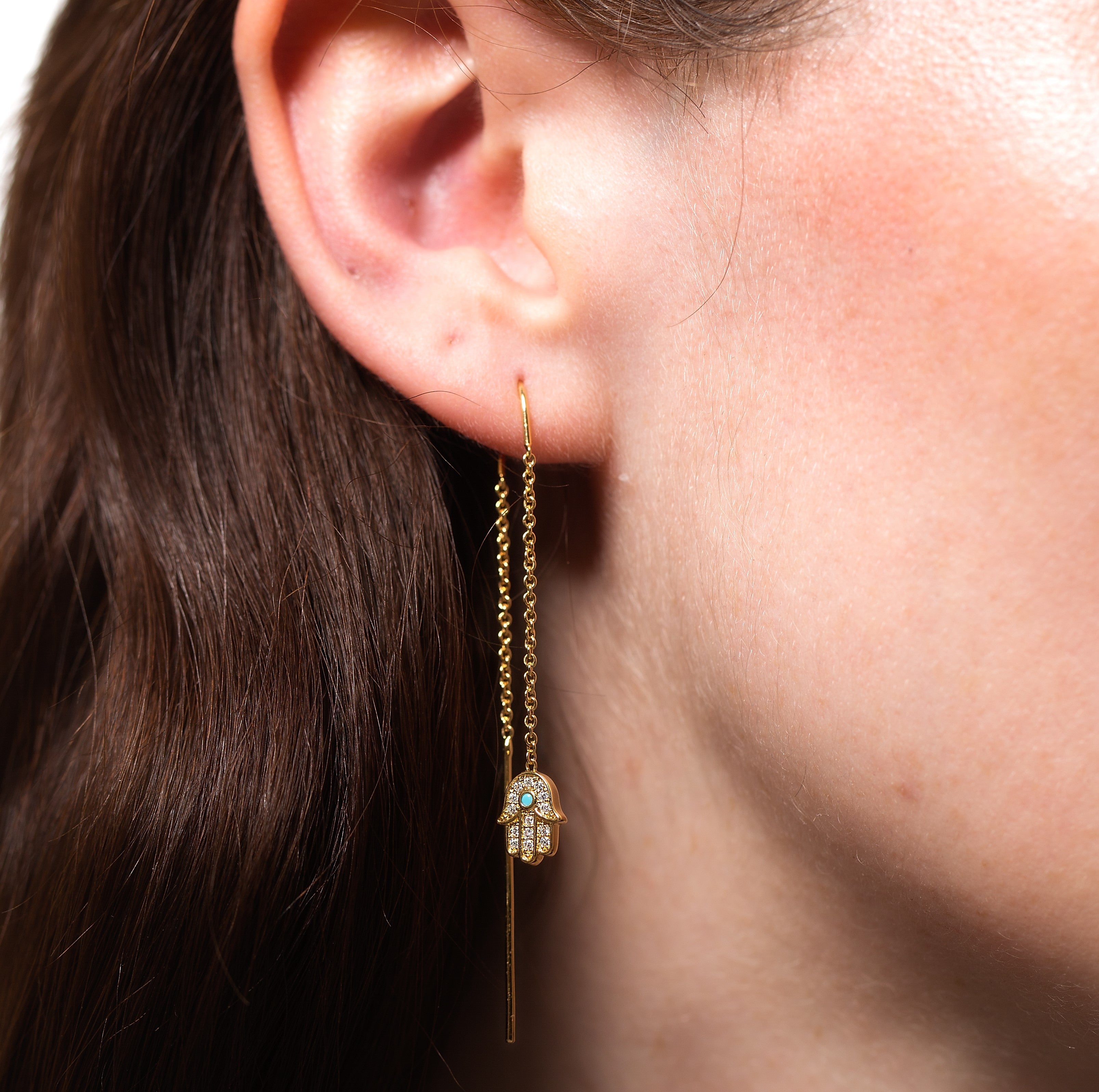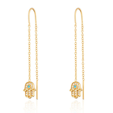 These fatima hand threader earrings will add a touch of modern glamour and sparkle to any outfit! The perfect dangly earring accessory for everyday wear