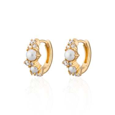 Sparkling Pearl Huggie Earrings