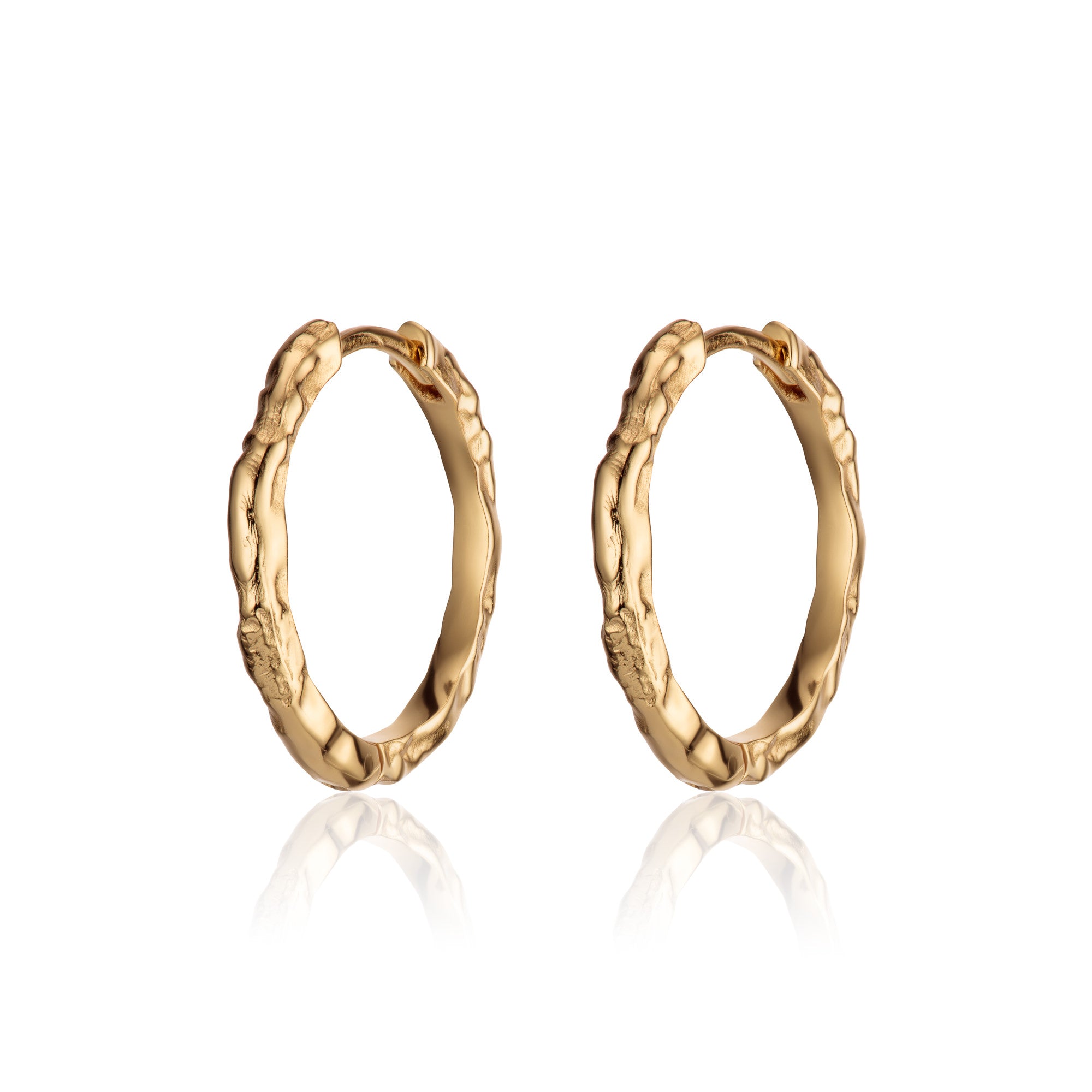 Limited edition and endlessly wearable, these molten gold hoops bring texture & high-shine to your everyday ear stack.