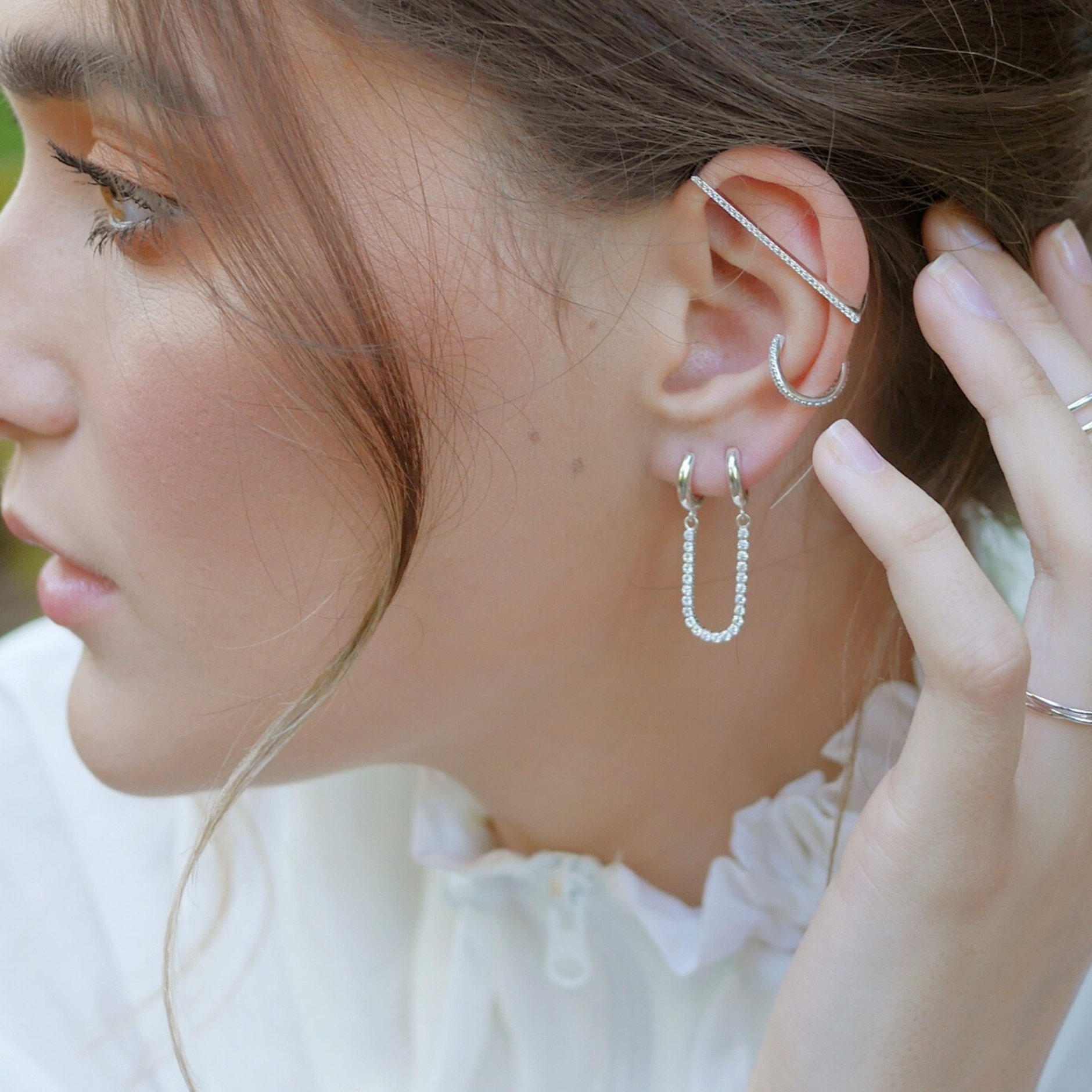A single earring piece, our Chain Linked Mismatched Huggies are ideal for creating a unique earring stack. Plain or sparkling, now you can have both.