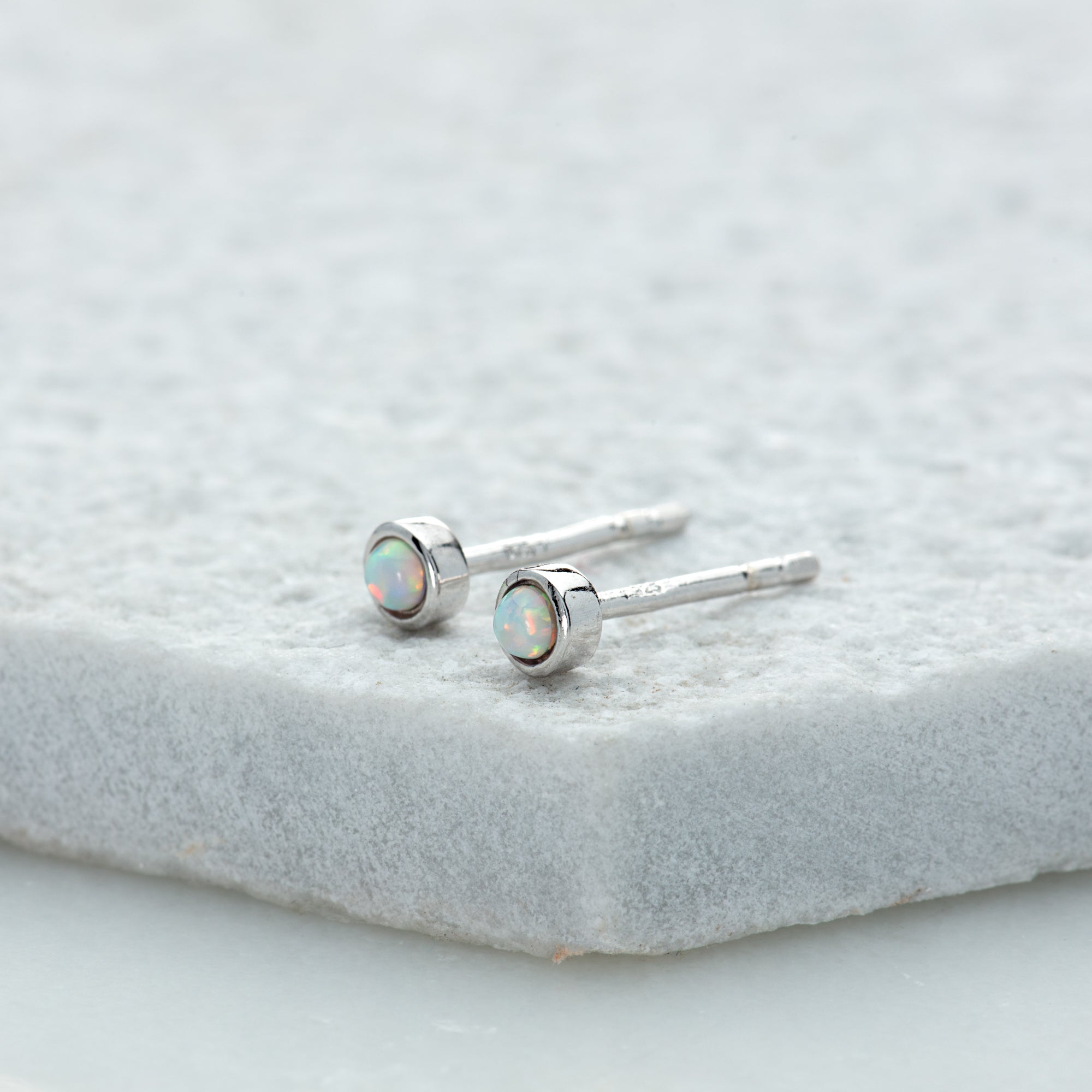 Silver Opal Teeny Stud Earrings