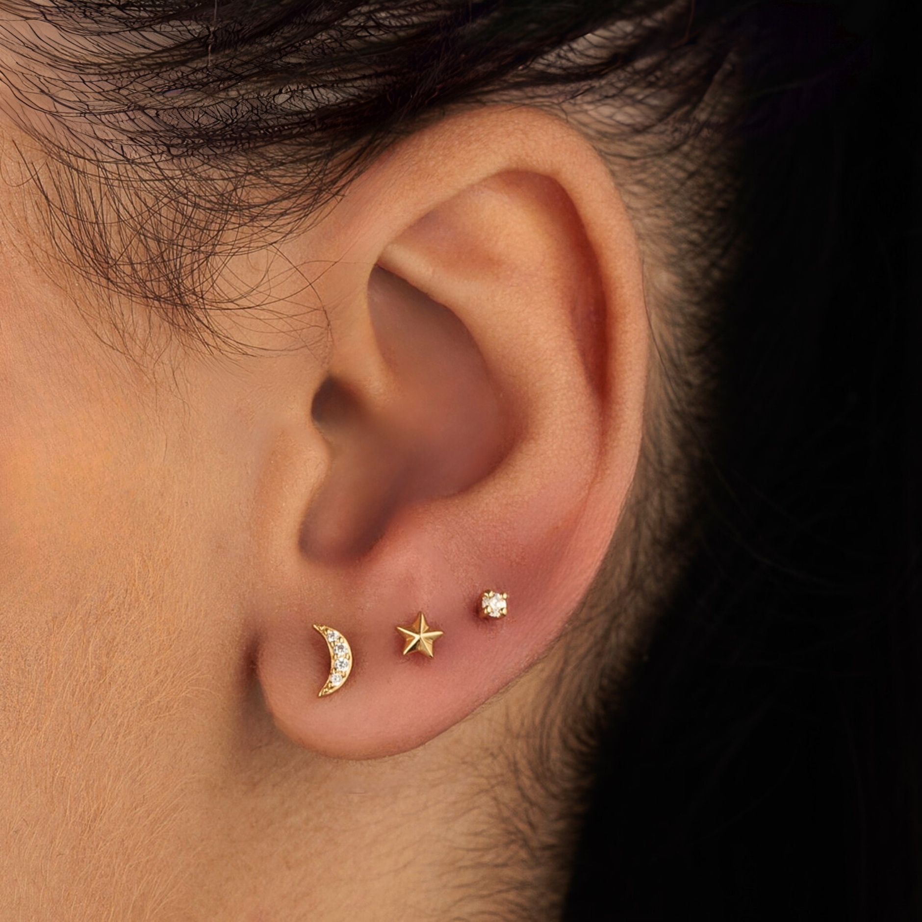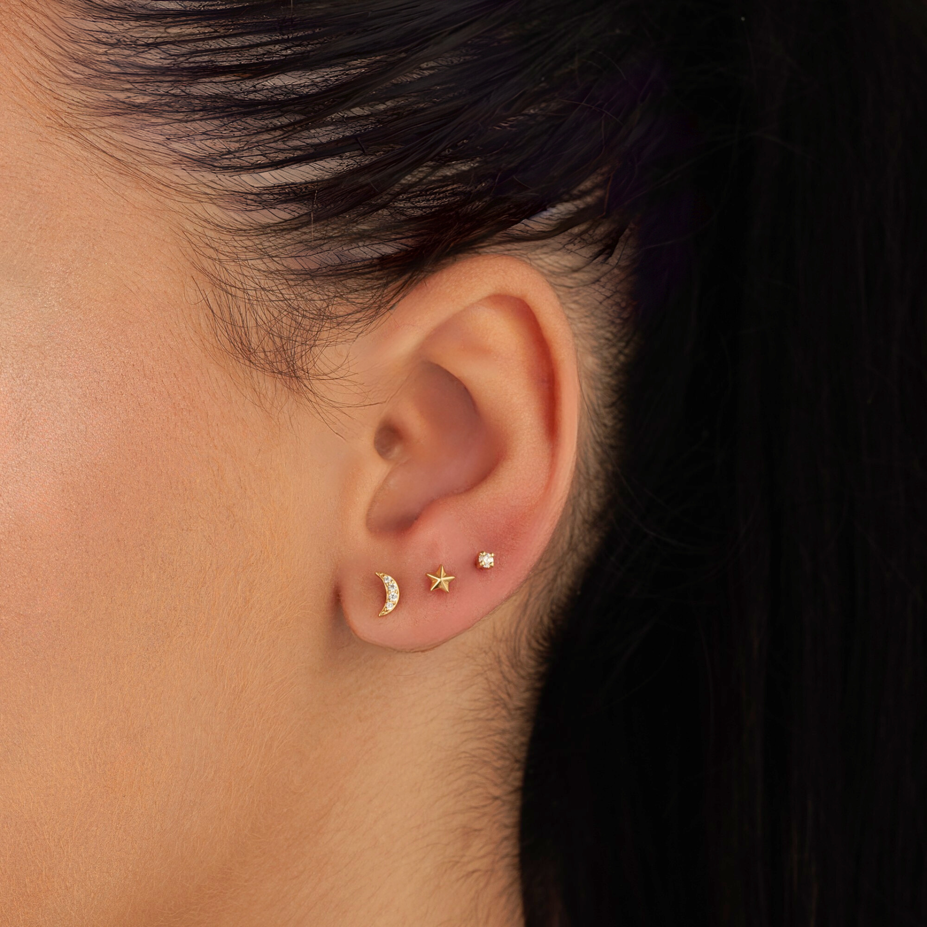 Build a dainty yet stylish celestial ear stack with this set of three flat back earrings