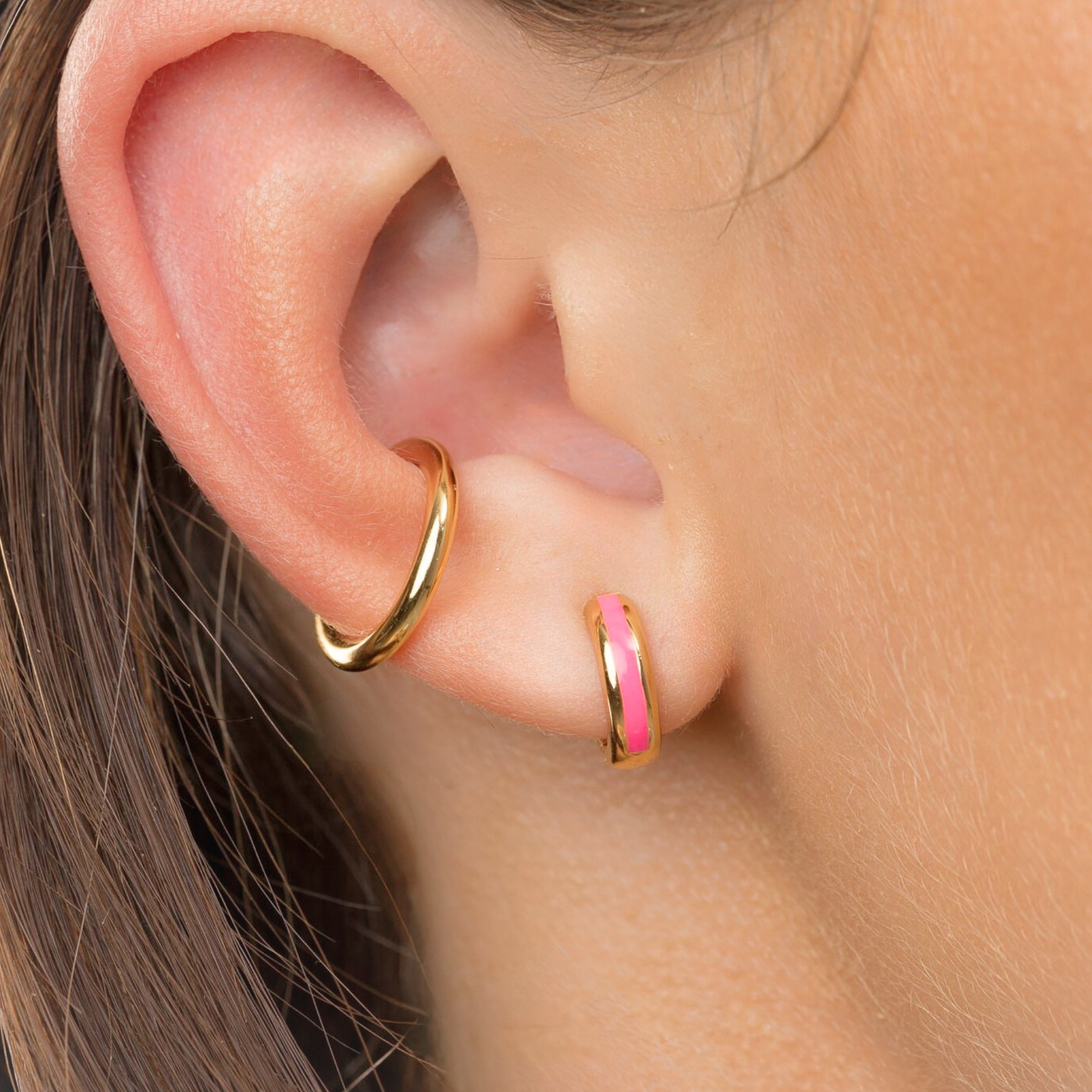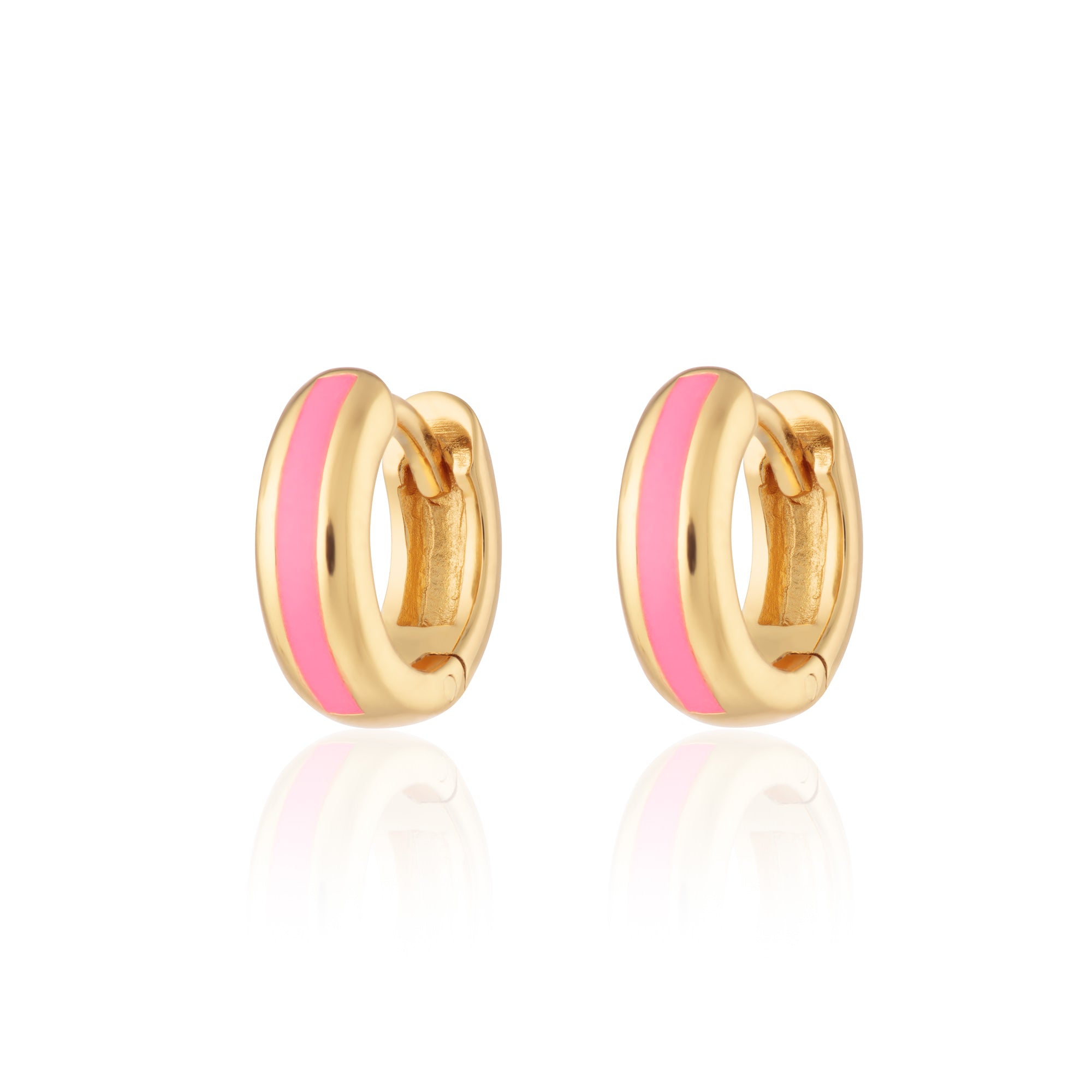Our candy stripe hoops feature an enamel neon pink stripe to add a pop of colour to your ear stack
