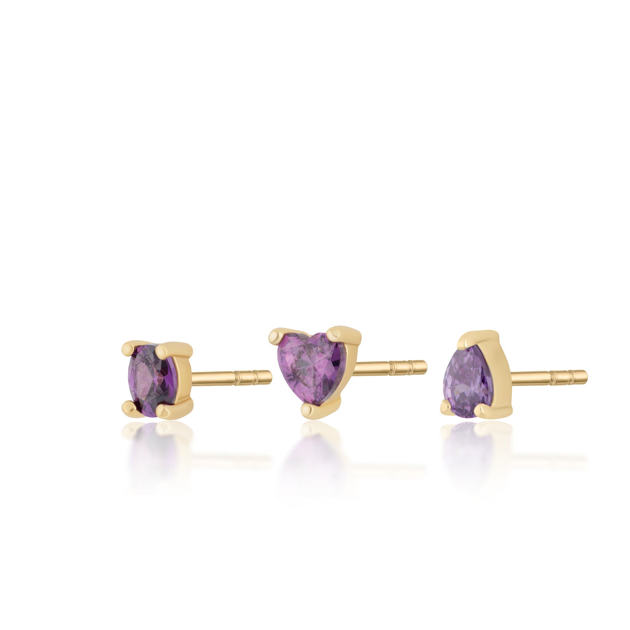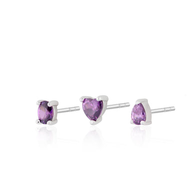 Each of the Hannah Martin Violet Set of 3 Stud Earrings sparkles with a light purple cubic zirconia, bringing positive vibes to your ears.
