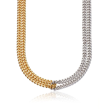 Mixed Metal Curb Chain Looped Necklace