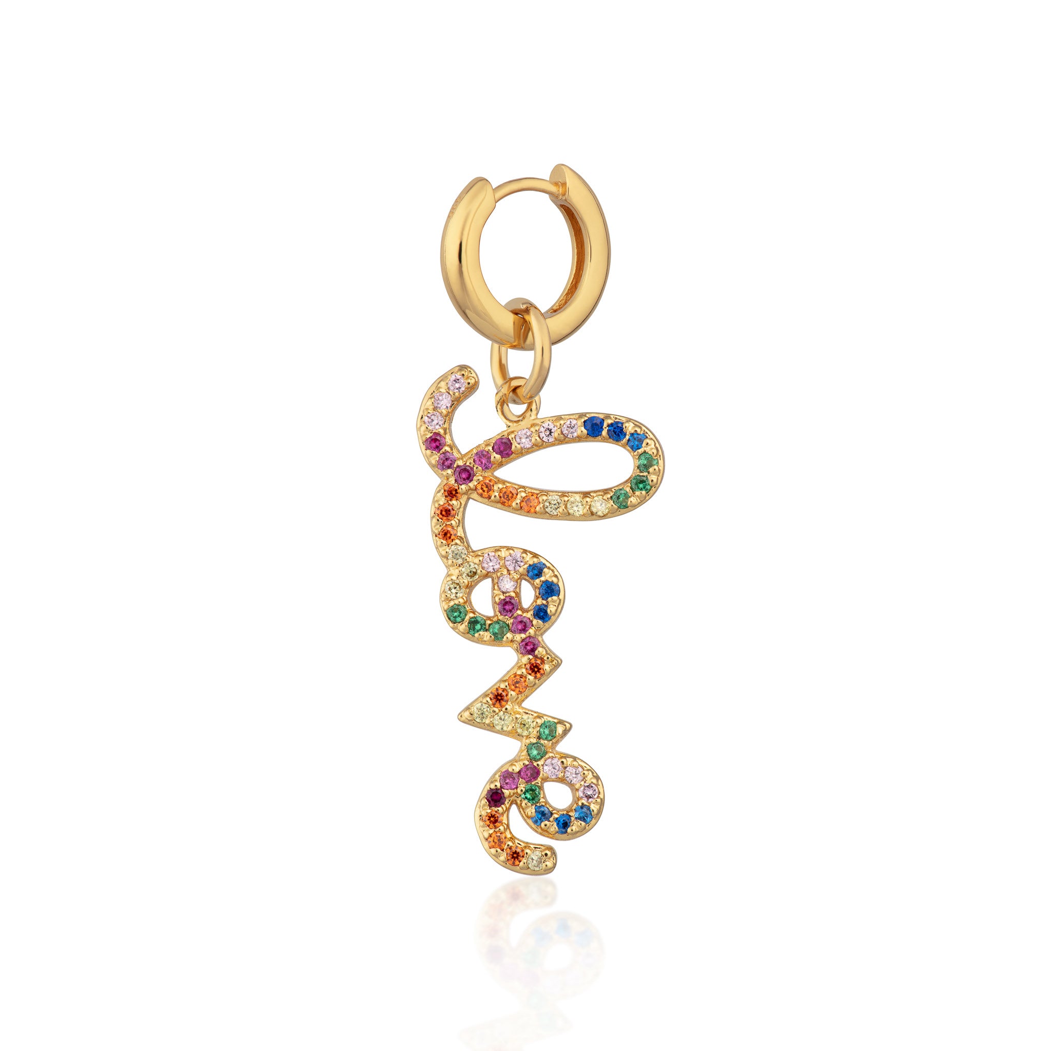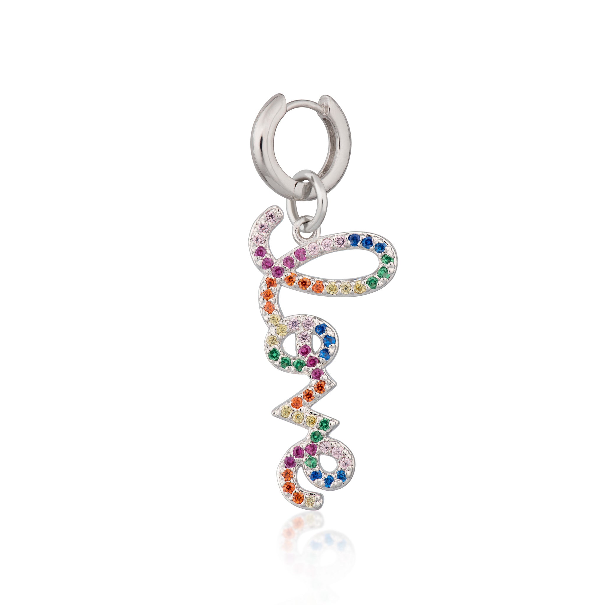 A dazzling display of colour the rainbow love charm hangs beautifully from our classic huggie hoop.